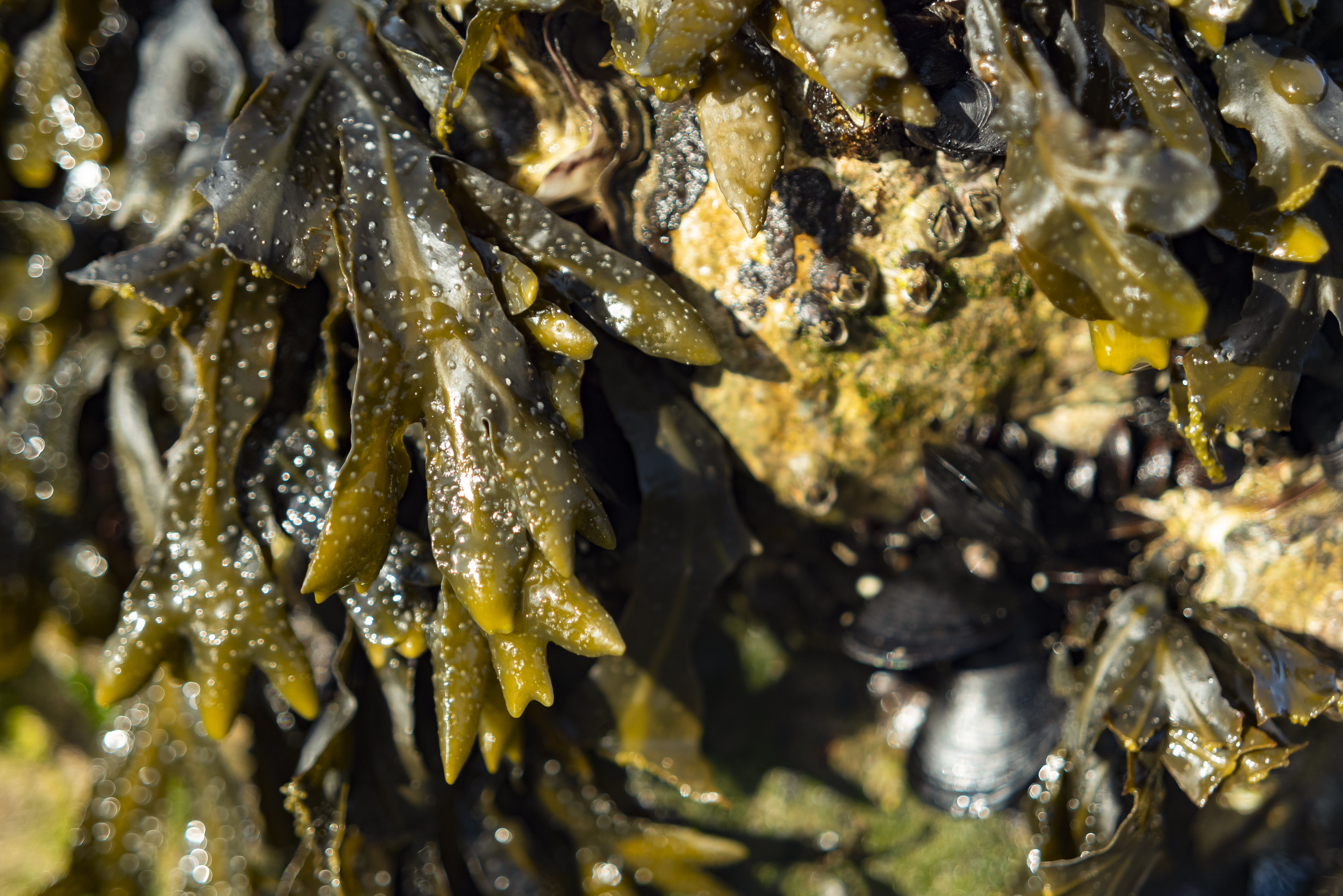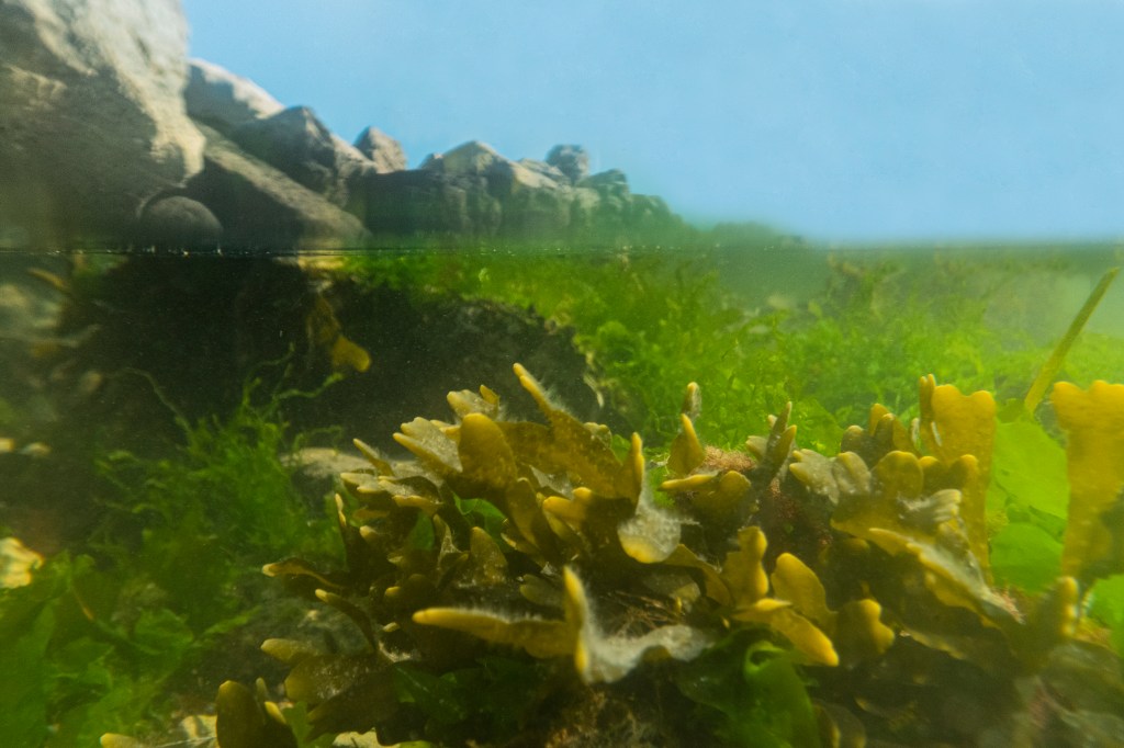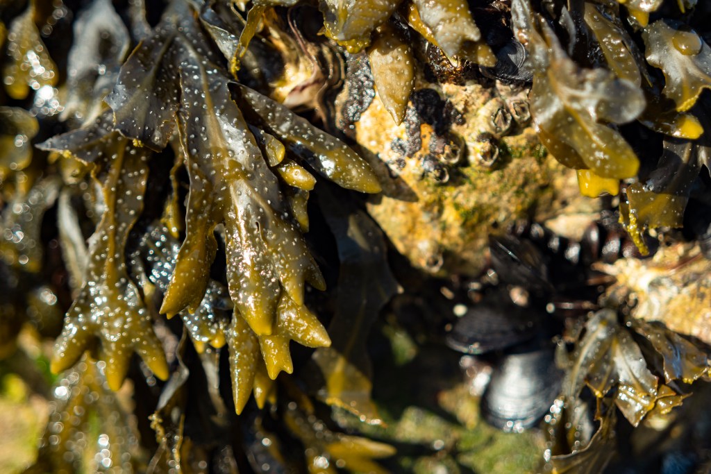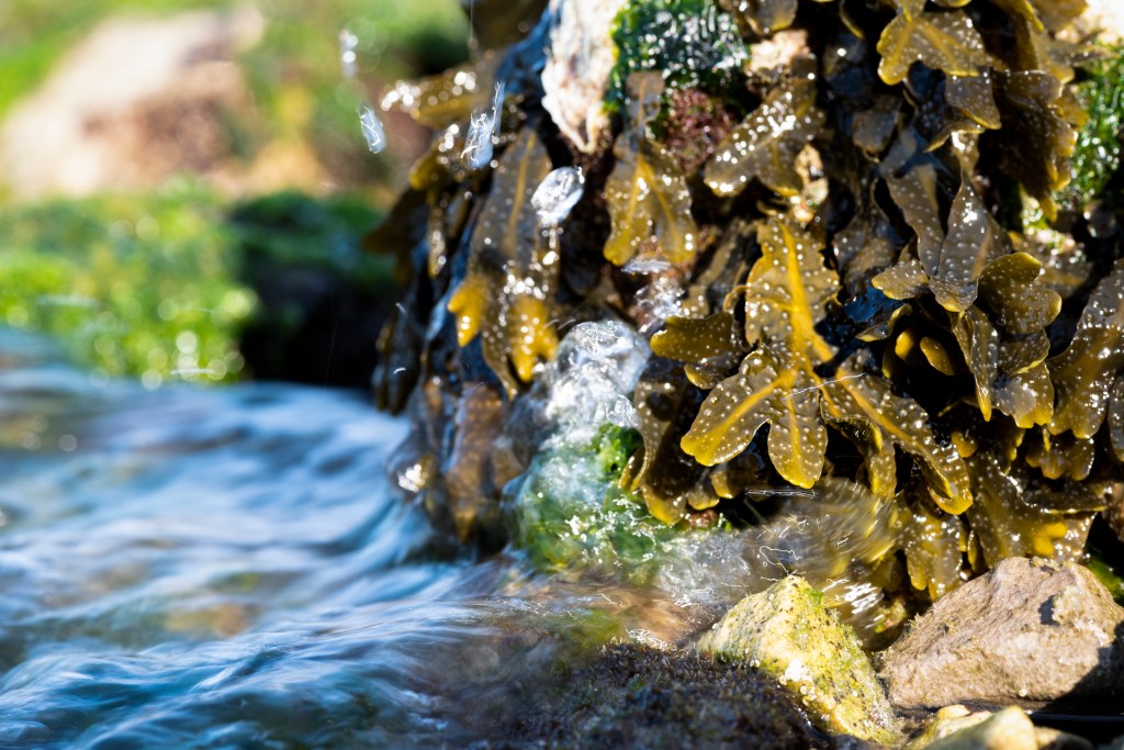 Le alghe della zona intertidale — verdi, rosse e brune — non sono semplici “piante marine”. Sono ingegneri dell’ecosistema.