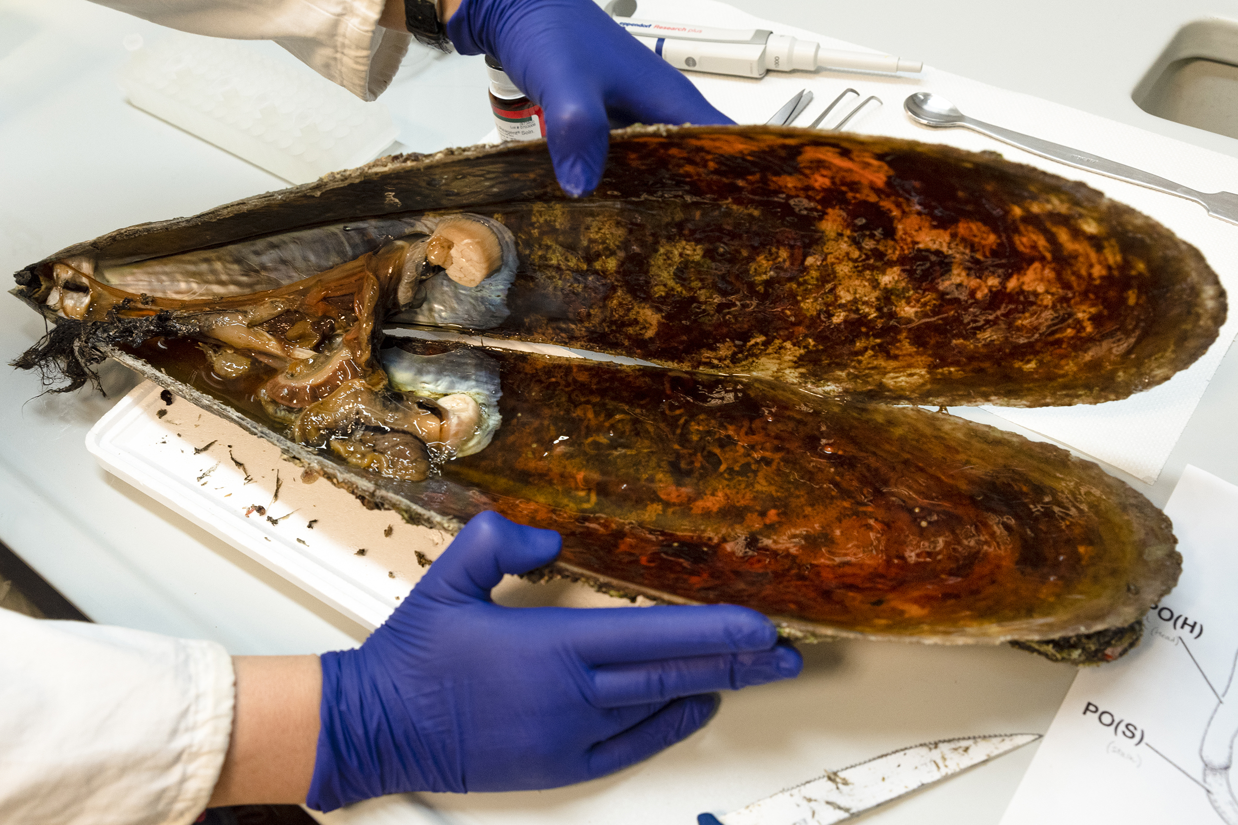 Alcuni esemplari recuperati durante la moria vengono studiati dopo la morte: